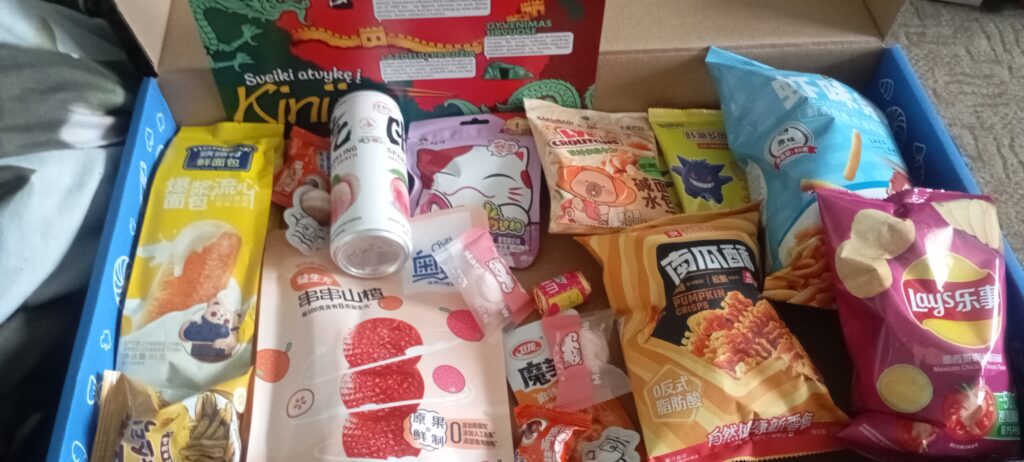 Labai smagu gauti dėžutę ir patirti netikėtumo jausmą, ją atvėrus ir susipažinus su užkandžių šalimi. Įdomu, kad užkandžiai yra įvairūs, tiek saldūs, tiek sūrūs. Ši patirtis kartu yra puiki galimybė lavinti savo skonio receptorius su naujais skoniais nevisada randamais lietuvių virtuvėje ir užkandžiuose 😀